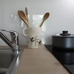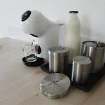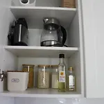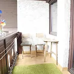 Este apartamento de 40 m^2 inclui varanda e máquinas de café/chá em cada quarto.